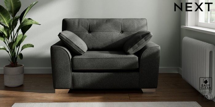 7.2.10 Buy Stamford Buttoned Back Snuggle Tweedy Blend Easy Clean Charcoal Grey Large Square Angle - Chrome Metal from the Next UK online shop Click here to use our accessible website