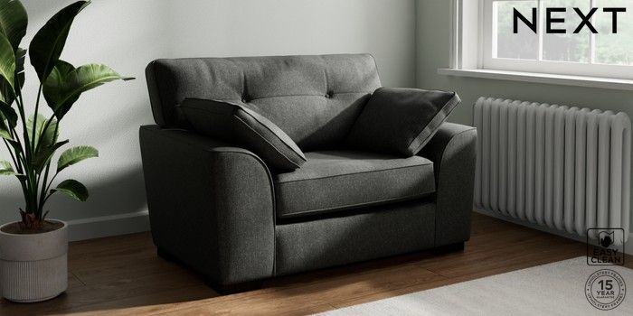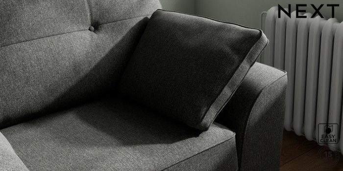 7.2.10 Buy Stamford Buttoned Back Snuggle Tweedy Blend Easy Clean Charcoal Grey Large Square Angle - Dark from the Next UK online shop Click here to use our accessible website