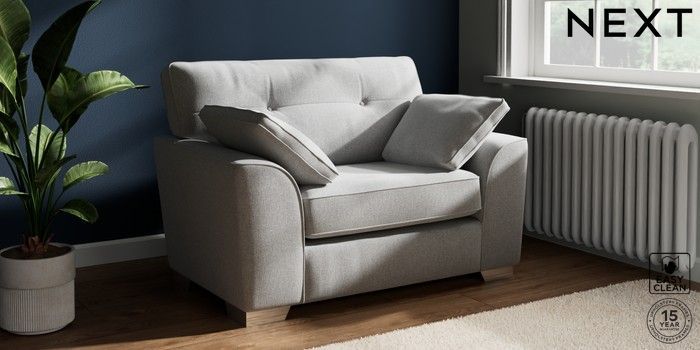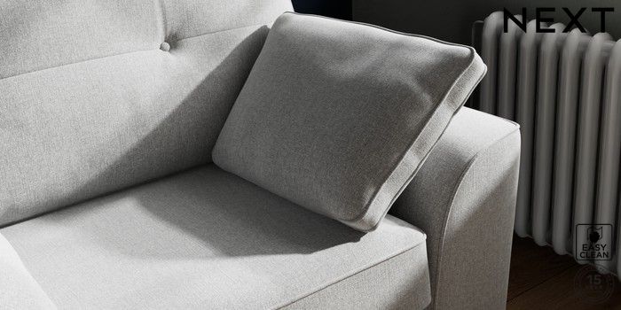 7.2.10 Buy Stamford Buttoned Back Snuggle Tweedy Blend Easy Clean Light Silver Grey Large Square Angle - Chrome Metal from the Next UK online shop Click here to use our accessible website