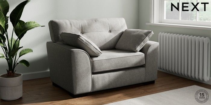 7.2.6 Buy Stamford Buttoned Back Snuggle Tweedy Chenille Mid Grey Large Square Angle - Dark from the Next UK online shop Click here to use our accessible website