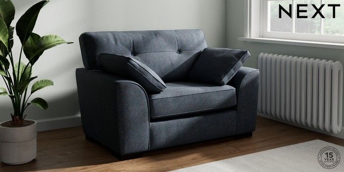 7.2.10 Buy Stamford Buttoned Back Snuggle Tweedy Chenille Navy Blue Large Square Angle - Dark from the Next UK online shop Click here to use our accessible website