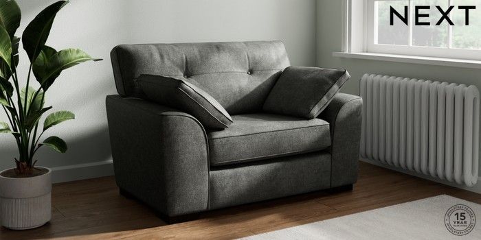7.2.10 Buy Stamford Buttoned Back Snuggle Plush Chenille Dark Grey Large Square Angle - Dark from the Next UK online shop Click here to use our accessible website