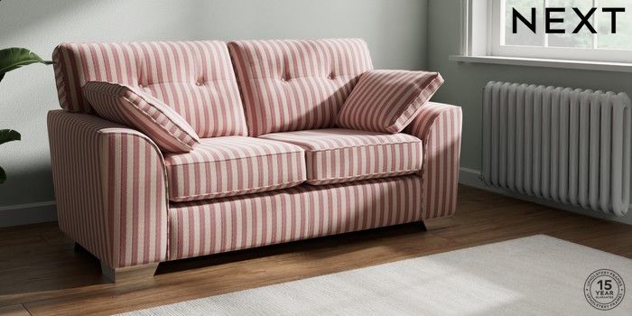 7.3.1 Buy Stamford Buttoned Back Sofa Bed Bold Chenille Stripe Dark Pink Large Square Angle - Chrome Metal from the Next UK online shop Click here to use our accessible website