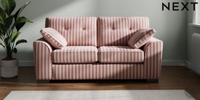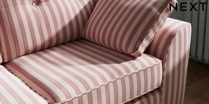 7.3.1 Buy Stamford Buttoned Back Sofa Bed Bold Chenille Stripe Dark Pink Large Square Angle - Gunmetal from the Next UK online shop Click here to use our accessible website