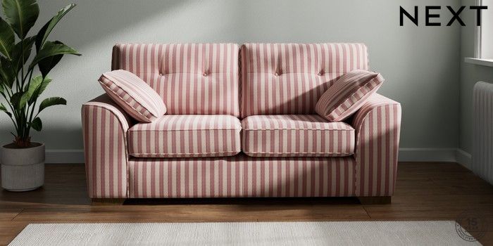 7.3.1 Buy Stamford Buttoned Back Sofa Bed Bold Chenille Stripe Dark Pink Large Square Angle - Mid from the Next UK online shop Click here to use our accessible website