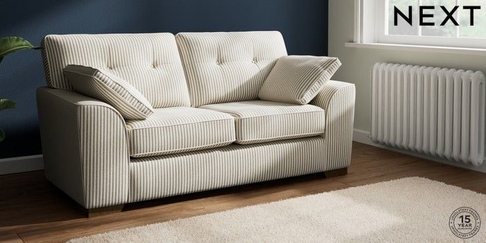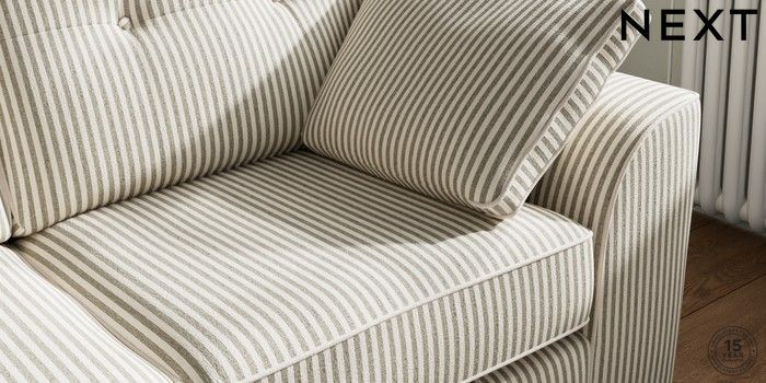 7.3.1 Buy Stamford Buttoned Back Sofa Bed Chenille Stripe Moss Green Large Square Angle - Mid from the Next UK online shop Click here to use our accessible website