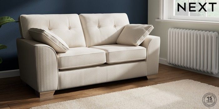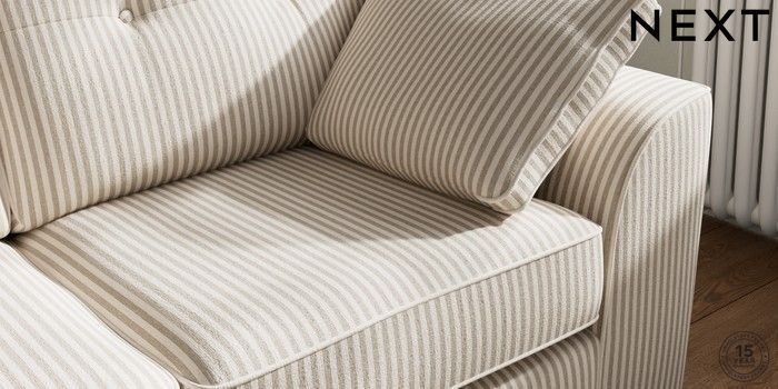 7.3.1 Buy Stamford Buttoned Back Sofa Bed Chenille Stripe Natural Large Square Angle - Chrome Metal from the Next UK online shop Click here to use our accessible website