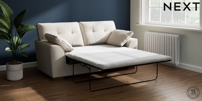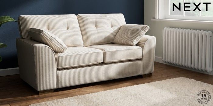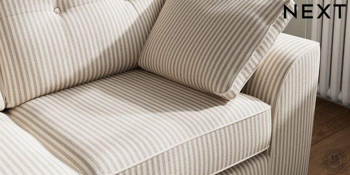 7.3.1 Buy Stamford Buttoned Back Sofa Bed Chenille Stripe Natural Large Square Angle - Mid from the Next UK online shop Click here to use our accessible website