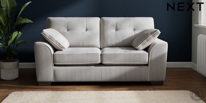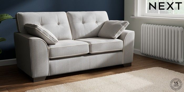7.3.1 Buy Stamford Buttoned Back Sofa Bed Chenille Stripe Slate Blue Large Square Angle - Gunmetal from the Next UK online shop Click here to use our accessible website