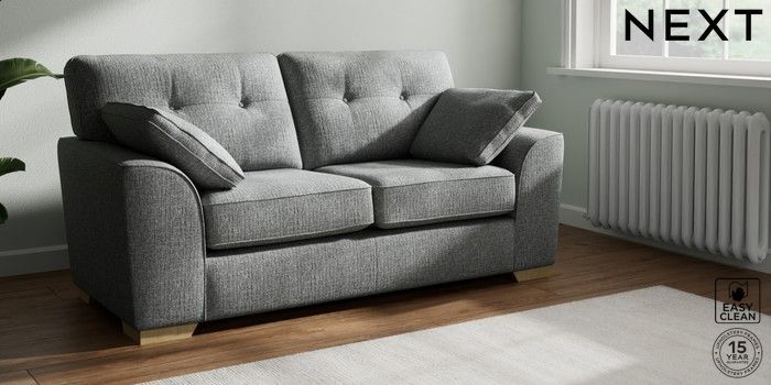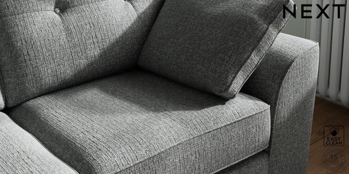 7.2.10 Buy Stamford Buttoned Back Sofa Bed Chunky Boucle Easy Clean Mid Grey Large Square Angle - Light from the Next UK online shop Click here to use our accessible website