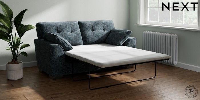 7.2.10 Buy Stamford Buttoned Back Sofa Bed Chunky Chenille Dark Navy Blue Large Square Angle - Gunmetal from the Next UK online shop Click here to use our accessible website