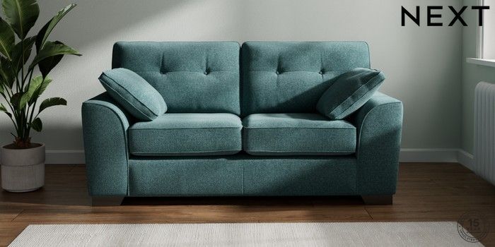 7.2.6 Buy Stamford Buttoned Back Sofa Bed Chunky Chenille Mid Teal Green Large Square Angle - Gunmetal from the Next UK online shop Click here to use our accessible website