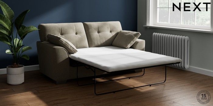 7.2.10 Buy Stamford Buttoned Back Sofa Bed Chunky Marl Light Olive Green Large Square Angle - Gunmetal from the Next UK online shop Click here to use our accessible website
