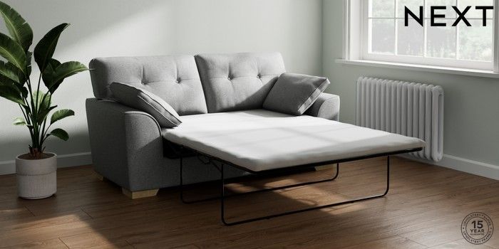 7.2.10 Buy Stamford Buttoned Back Sofa Bed Chunky Weave Mid Grey Large Square Angle - Light from the Next UK online shop Click here to use our accessible website