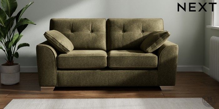 7.2.6 Buy Stamford Buttoned Back Sofa Bed Cotswold Chenille Dark Green Large Square Angle - Chrome Metal from the Next UK online shop Click here to use our accessible website