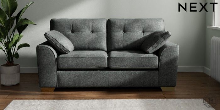 7.2.6 Buy Stamford Buttoned Back Sofa Bed Cotswold Chenille Dark Grey Large Square Angle - Brushed Brass from the Next UK online shop Click here to use our accessible website