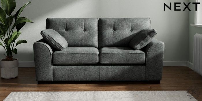 7.2.6 Buy Stamford Buttoned Back Sofa Bed Cotswold Chenille Dark Grey Large Square Angle - Dark from the Next UK online shop Click here to use our accessible website
