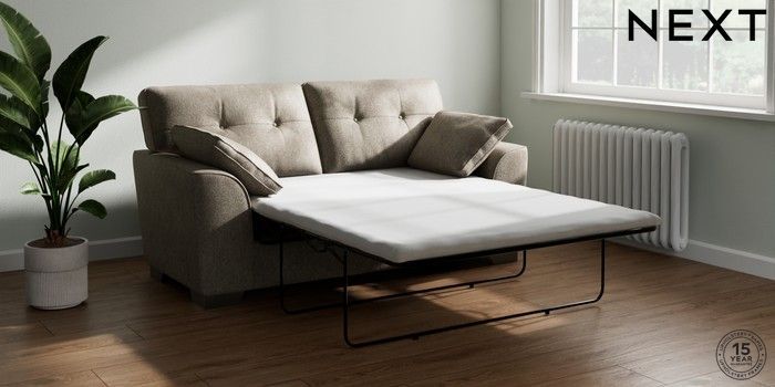 7.2.6 Buy Stamford Buttoned Back Sofa Bed Cotswold Chenille Mid Mink Brown Large Square Angle - Gunmetal from the Next UK online shop Click here to use our accessible website