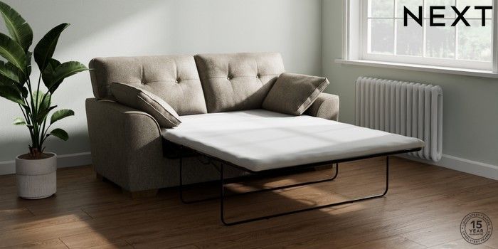 7.2.6 Buy Stamford Buttoned Back Sofa Bed Cotswold Chenille Mid Mink Brown Large Square Angle - Mid from the Next UK online shop Click here to use our accessible website