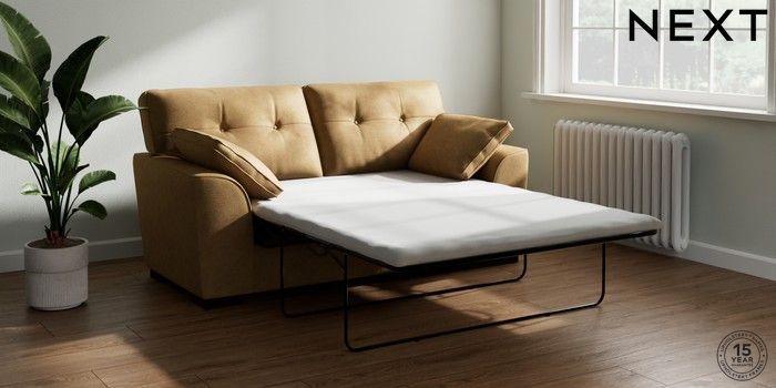 7.2.6 Buy Stamford Buttoned Back Sofa Bed Luxe Chenille Honey Yellow Large Square Angle - Dark from the Next UK online shop Click here to use our accessible website
