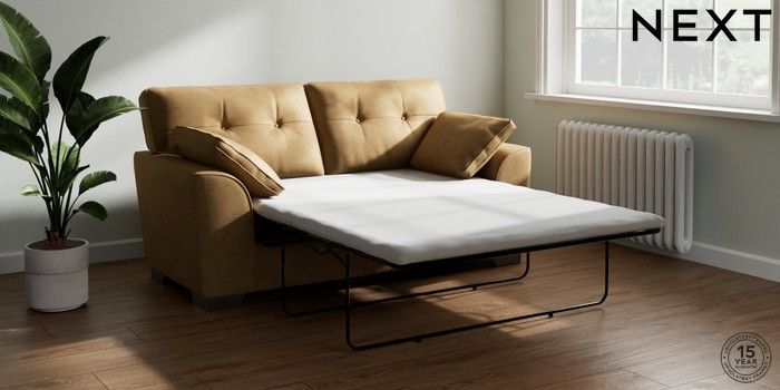 7.2.6 Buy Stamford Buttoned Back Sofa Bed Luxe Chenille Honey Yellow Large Square Angle - Gunmetal from the Next UK online shop Click here to use our accessible website