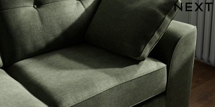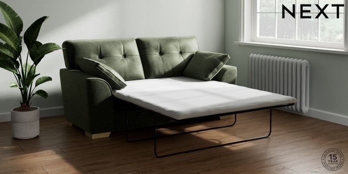 7.2.6 Buy Stamford Buttoned Back Sofa Bed Luxe Chenille Mid Green Large Square Angle - Light from the Next UK online shop Click here to use our accessible website
