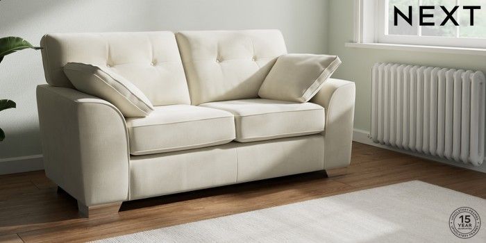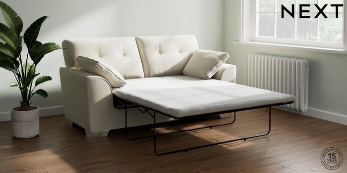 7.0.3 Buy Stamford Buttoned Back Sofa Bed Luxe Chenille Oyster Large Square Angle - Chrome Metal from the Next UK online shop Click here to use our accessible website