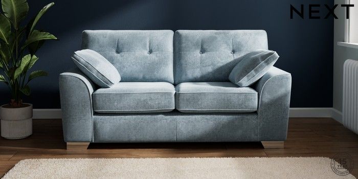 7.2.6 Buy Stamford Buttoned Back Sofa Bed Plush Chenille Light Blue Large Square Angle - Chrome Metal from the Next UK online shop Click here to use our accessible website