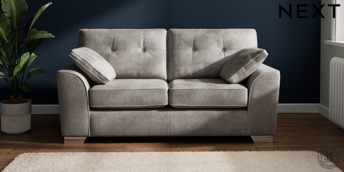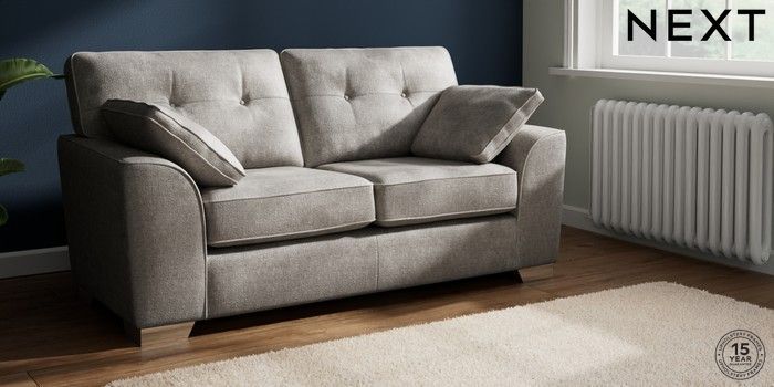 7.2.10 Buy Stamford Buttoned Back Sofa Bed Plush Chenille Light Grey Large Square Angle - Chrome Metal from the Next UK online shop Click here to use our accessible website