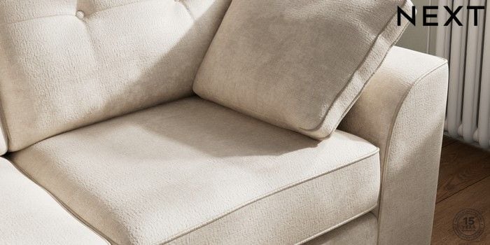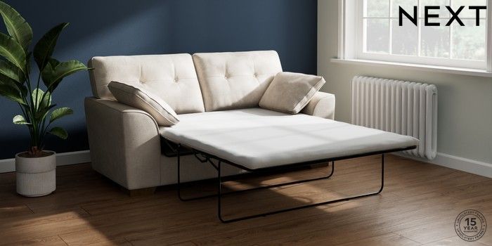 7.2.10 Buy Stamford Buttoned Back Sofa Bed Plush Chenille Oyster Large Square Angle - Mid from the Next UK online shop Click here to use our accessible website