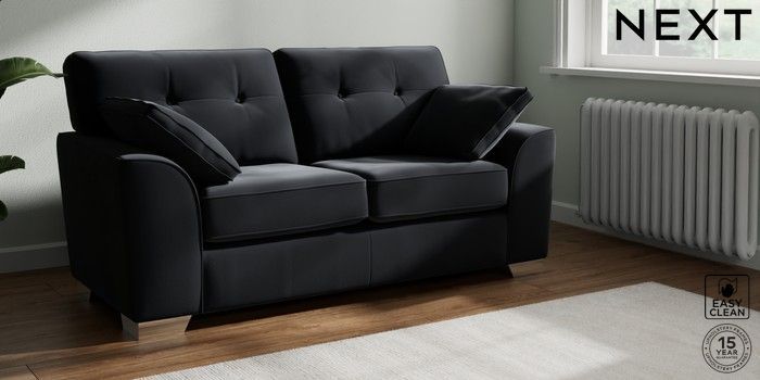 7.2.10 Buy Stamford Buttoned Back Sofa Bed Plush Velvet Easy Clean Charcoal Grey Large Square Angle - Chrome Metal from the Next UK online shop Click here to use our accessible website