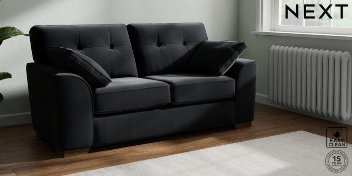 7.2.10 Buy Stamford Buttoned Back Sofa Bed Plush Velvet Easy Clean Charcoal Grey Large Square Angle - Mid from the Next UK online shop Click here to use our accessible website