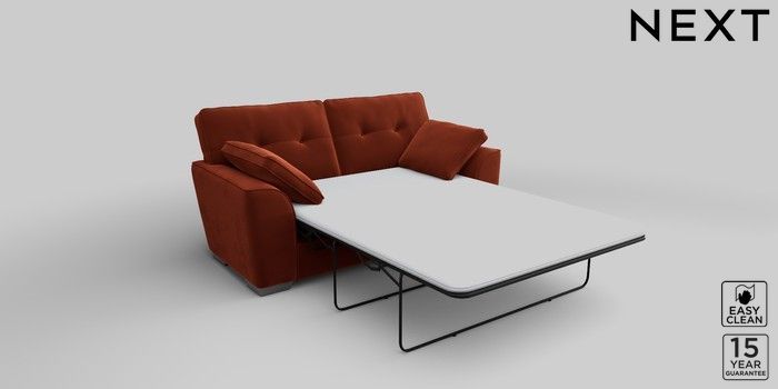 6.11.8 Buy Stamford Buttoned Back Sofa Bed Plush Velvet Easy Clean Ginger Orange Large Square Angle - Gunmetal from the Next UK online shop Click here to use our accessible website