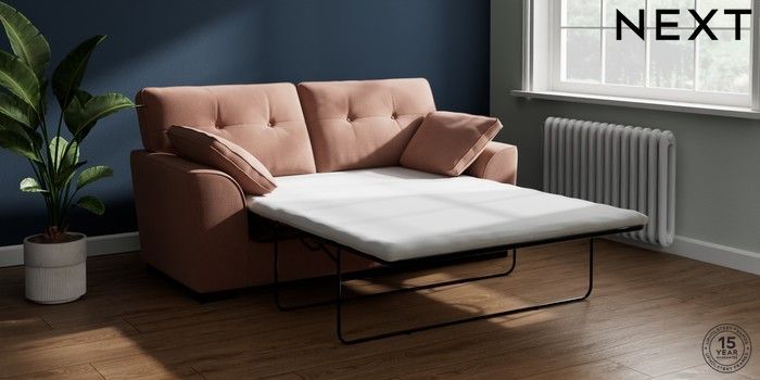 7.2.10 Buy Stamford Buttoned Back Sofa Bed Relaxed Linen Look Light Rust Brown Large Square Angle - Dark from the Next UK online shop Click here to use our accessible website