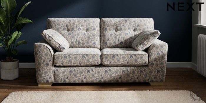 7.3.1 Buy Stamford Buttoned Back Sofa Bed Relaxed Linen Look Print Woodblock Floral Blue Large Square Angle - Light from the Next UK online shop Click here to use our accessible website