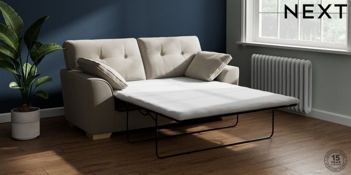 7.2.10 Buy Stamford Buttoned Back Sofa Bed Ripple Chenille Light Natural Large Square Angle - Light from the Next UK online shop Click here to use our accessible website