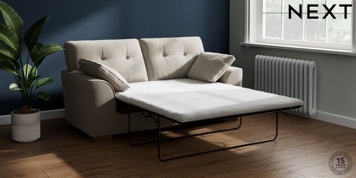7.2.10 Buy Stamford Buttoned Back Sofa Bed Ripple Chenille Light Natural Large Square Angle - Mid from the Next UK online shop Click here to use our accessible website