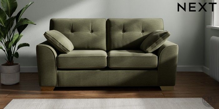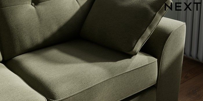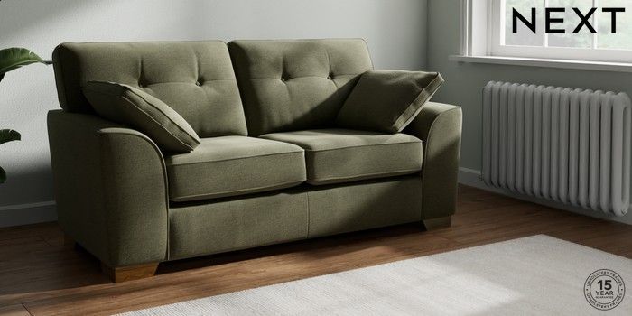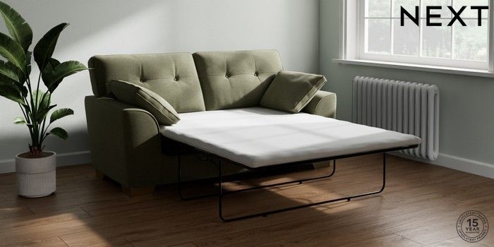 7.2.10 Buy Stamford Buttoned Back Sofa Bed Ripple Chenille Mid Moss Green Large Square Angle - Brushed Brass from the Next UK online shop Click here to use our accessible website