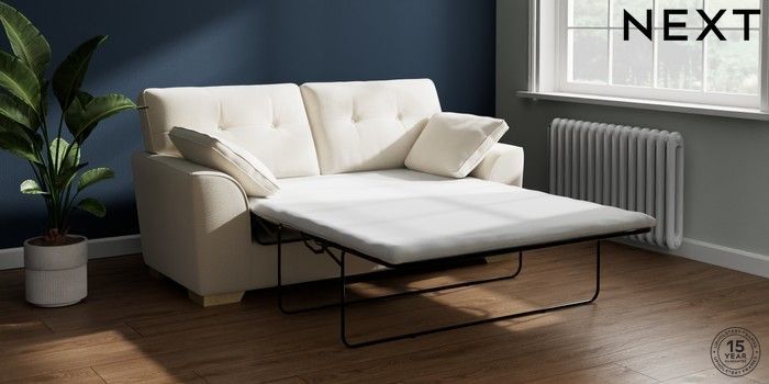 7.2.10 Buy Stamford Buttoned Back Sofa Bed Ripple Chenille Oyster Large Square Angle - Light from the Next UK online shop Click here to use our accessible website