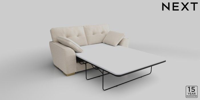 6.11.8 Buy Stamford Buttoned Back Sofa Bed Studio Chenille Oyster Large Square Angle - Brushed Brass from the Next UK online shop Click here to use our accessible website
