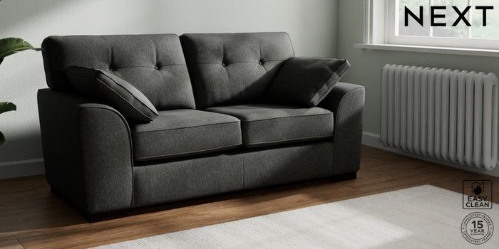 7.2.10 Buy Stamford Buttoned Back Sofa Bed Tweedy Blend Easy Clean Charcoal Grey Large Square Angle - Dark from the Next UK online shop Click here to use our accessible website