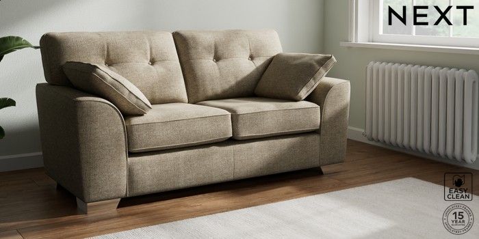 7.2.10 Buy Stamford Buttoned Back Sofa Bed Woven Chenille Easy Clean Mid Natural Large Square Angle - Chrome Metal from the Next UK online shop Click here to use our accessible website