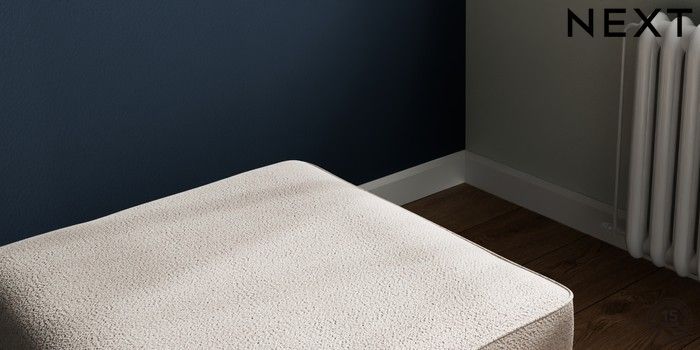 7.2.10 Buy Stamford Buttoned Back Storage Footstool Boucle Chenille Light Natural Square Angle - Light from the Next UK online shop Click here to use our accessible website