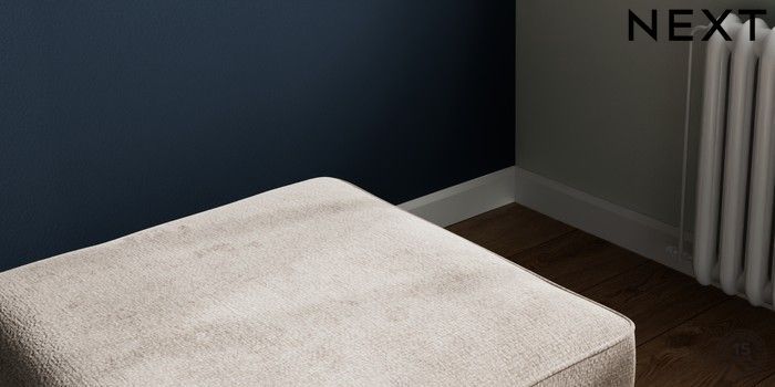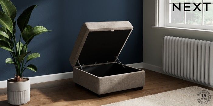 7.2.6 Buy Stamford Buttoned Back Storage Footstool Chunky Chenille Light Dove Square Angle - Dark from the Next UK online shop Click here to use our accessible website