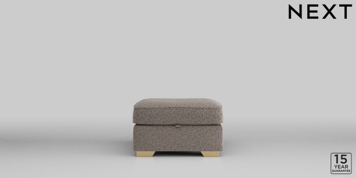 6.12.1 Buy Stamford Buttoned Back Storage Footstool Chunky Chenille Mink Brown Square Angle - Brushed Brass from the Next UK online shop Click here to use our accessible website