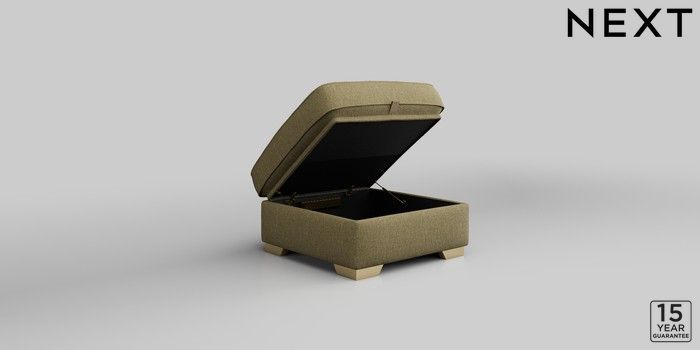 6.12.1 Buy Stamford Buttoned Back Storage Footstool Chunky Chenille Oyster Square Angle - Brushed Brass from the Next UK online shop Click here to use our accessible website