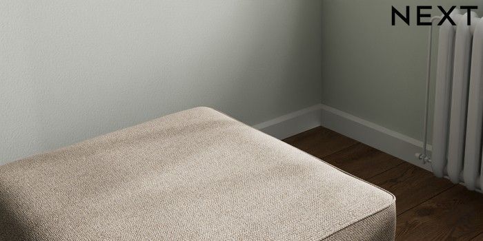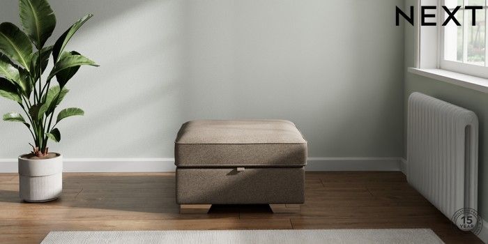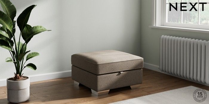 7.2.10 Buy Stamford Buttoned Back Storage Footstool Chunky Weave Dark Natural Square Angle - Chrome Metal from the Next UK online shop Click here to use our accessible website