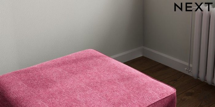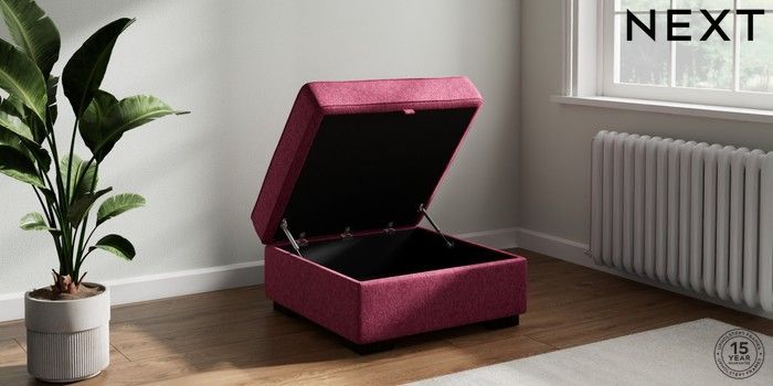 7.2.10 Buy Stamford Buttoned Back Storage Footstool Cotswold Chenille Dark Raspberry Pink Square Angle - Dark from the Next UK online shop Click here to use our accessible website