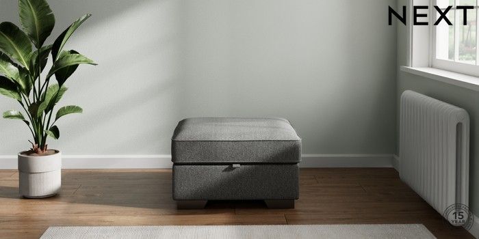 7.2.10 Buy Stamford Buttoned Back Storage Footstool Tweedy Chenille Dark Grey Square Angle - Gunmetal from the Next UK online shop Click here to use our accessible website