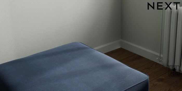 7.2.10 Buy Stamford Buttoned Back Storage Footstool Fine Chenille Easy Clean Dark Navy Blue Square Angle - Light from the Next UK online shop Click here to use our accessible website